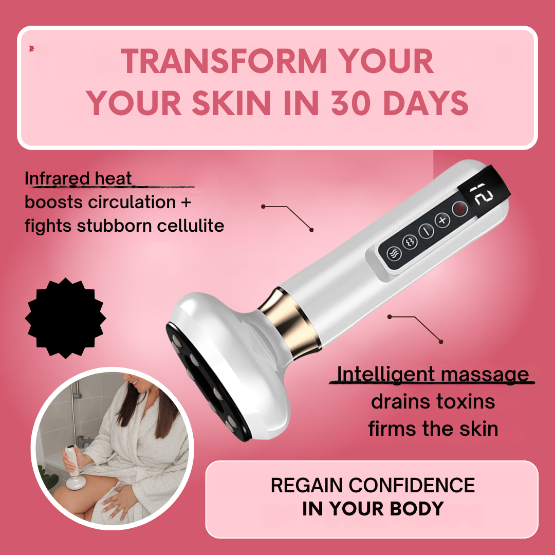 このデバイスは、深層マッサージ技術のおかげで、血行を促進し、肌を滑らかにし、セルライトやたるみに関連する凹凸を減少させるために深く作用します。